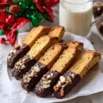 - Harden Chocolate: Place the chocolate-coated biscotti in the freezer for 10-14 minutes to set the chocolate shell.