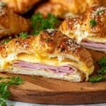 Deliciously warm and melty baked ham and cheese croissants made with buttery croissants filled with savory deli ham and Swiss cheese, optionally enhanced with Dijon mustard and mayonnaise for extra flavor. Perfect for a hearty breakfast, brunch, or snack.