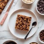 Keywords: banana oatmeal bars, healthy snack bars, breakfast bars, baked banana bars, easy oatmeal bars, nut butter bars, chocolate chip bars