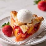This Brown Butter Strawberry Peach Pie combines a nutty, rich browned butter crust with a luscious, fresh fruit filling made from juicy peaches and strawberries. The pie features a delicate lattice top and a perfectly balanced sweet and tangy filling thickened with cornstarch and enhanced with lemon zest and juice. A delicious fruit pie perfect for summer gatherings or any season craving.