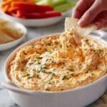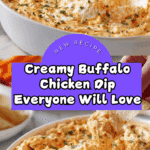 This classic Buffalo Chicken Dip recipe is a creamy, spicy, and cheesy appetizer perfect for game days or parties. Made with shredded chicken, cream cheese, ranch dressing, Buffalo sauce, and cheddar cheese, it’s baked until bubbly and golden brown, then served hot with chips or veggies for dipping.