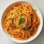 This Caramelized Onion Chili Oil Pasta is a simple yet flavorful dish that combines sweet, caramelized onions with the spicy kick of chili oil, perfectly tossed with al dente pasta and finished with a sprinkle of Parmesan cheese. It’s an easy-to-make meal that brings a balance of savory, sweet, and heat in every bite.