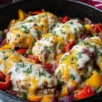 PrintCheesy Baja Chicken & Bell Pepper Skillet Recipe