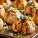 Cheesy Buffalo Ranch Chicken Bombs are a delicious and easy-to-make appetizer featuring shredded chicken mixed with cream cheese, buffalo sauce, cheddar cheese, ranch dressing, and green onions. Wrapped in flaky crescent roll dough and baked until golden brown, these flavorful bites are perfect for game day, parties, or a tasty snack.