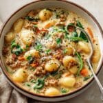This creamy Chicken Gnocchi Soup is a comforting, hearty dish perfect for cozy dinners. Packed with tender chicken, pillowy gnocchi, and fresh spinach in a flavorful broth enriched with half and half and Parmesan cheese, this soup combines easy preparation with delicious results. It’s ideal for a satisfying meal that warms you up from the inside out.
