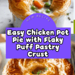 Chicken Pot Pie with Puff Pastry is a comforting classic that combines tender chicken, fresh vegetables, and a creamy sauce beneath a golden, flaky crust. This recipe uses convenient rotisserie chicken and frozen puff pastry for an easy yet impressive homemade meal.