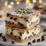 - Cool and Decorate: Allow the cannoli squares to cool for at least 30 minutes to set properly before cutting them into squares. Garnish the top with chopped pistachios, extra chocolate chips, and maraschino cherries for added flavor and visual appeal.