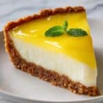 - Garnish and Serve: Carefully remove the tart from the pan. Arrange dollops of whipped cream evenly on top of the set orange curd. Scatter the fresh orange segments and crushed pistachios over the tart, and tuck fresh mint leaves into the whipped cream dollops. Serve chilled, using a warm knife to ensure clean slices.