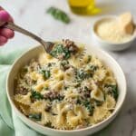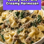 This Comforting Crockpot Ground Beef Pasta is a delicious one-pot meal that combines browned ground beef, savory beef broth, and pasta cooked slowly in a crockpot. Finished with creamy heavy cream, parmesan cheese, and fresh spinach, it’s a rich and hearty dish perfect for easy family dinners with minimal cleanup.