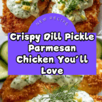 Crispy Dill Pickle Parmesan Chicken offers a delightful twist on classic fried chicken. Marinated in tangy pickle juice and coated with Parmesan-infused breadcrumbs, this dish is bursting with flavor and perfect for a satisfying meal.