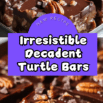 Decadent Turtle Bars are a rich and indulgent dessert featuring a buttery crumbly crust topped with a gooey caramel and toasted pecan layer, all crowned with a smooth dark chocolate topping. Perfect for anyone who loves the classic turtle flavor combination in a convenient bar form.