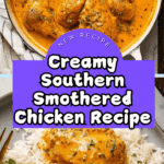Keywords: Southern smothered chicken, creamy chicken gravy, seared chicken recipe, comfort food, homestyle chicken, skillet chicken, marinated chicken, chicken thighs recipe