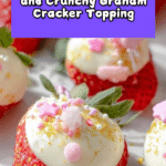 8. Step 8: Sprinkle graham cracker crumbs and sprinkles over the filled strawberries. Serve immediately for best texture and flavor.