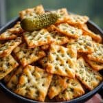 Dill Pickle Chex Mix is a tangy, crispy snack perfect for any occasion. This flavorful mix combines Rice and Corn Chex cereals with pretzels and cashews, all coated in a zesty blend of dill pickle juice, garlic, onion, and dill seasoning, then baked to a golden crisp. A delicious, addictive treat that brings a unique twist to classic snack mixes.