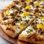 This Easy Biscuits and Gravy Breakfast Pizza combines the comforting flavors of classic biscuits and gravy with the convenience of a breakfast pizza. Featuring a flaky biscuit crust topped with savory sausage gravy, scrambled eggs, and melted cheddar cheese, this recipe is an irresistible morning treat perfect for family breakfasts or brunch gatherings.