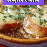 Keywords: French onion soup, caramelized onion soup, classic French soup, easy French soup, Gruyere soup, comforting soup