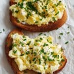 This Egg and Ricotta Toast recipe creates a creamy, soft scrambled egg topping perfectly complemented by the smooth ricotta cheese and fresh chives, all served atop crunchy toasted sourdough bread. A quick and elegant breakfast option that combines rich textures and delicate flavors.