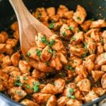 Juicy and flavorful Honey BBQ Chicken Bites made by searing bite-sized chicken pieces seasoned with classic spices, then tossing them in a sweet and tangy honey BBQ sauce. Perfect for a quick weeknight dinner or as party appetizers.