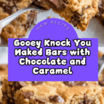Knock You Naked Bars are delectably rich dessert bars featuring a buttery dough base studded with semi-sweet chocolate chips and crunchy pecans, layered with smooth, creamy caramel, and baked to golden perfection. These bars boast a delightful combination of chewy, gooey, and crunchy textures, making them the perfect indulgence for any occasion.