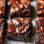 - Cool and Serve: Remove the pan from the oven and allow the brownies to cool completely in the pan. Use the parchment paper overhangs to lift the brownies out for easy cutting. Optionally, sprinkle some flaky sea salt on top to enhance the flavor before slicing into squares and serving.