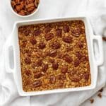 Keywords: Pecan pie baked oatmeal, gluten free baked oatmeal, vegan baked oatmeal, pecan pie breakfast, maple syrup oatmeal
