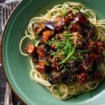 This Roasted Eggplant Noodles with Cashew Sauce is a flavorful and satisfying dish, perfect for a cozy dinner. Roasted eggplant and chickpeas blend seamlessly with vermicelli noodles and a creamy, tangy cashew sauce for a delightful meal that’s both comforting and unique.