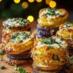 These Roasted Garlic Parmesan Potato Stacks are a delicious and elegant side dish featuring thinly sliced Yukon Gold potatoes layered with a creamy roasted garlic Parmesan sauce. Baked until golden and bubbly, they offer a comforting blend of rich flavors and a beautifully tender texture perfect for holiday meals or special dinners.