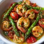 This shrimp and asparagus stir-fry is a quick and healthy dish packed with fresh flavors. Perfect for a weeknight dinner, it combines tender shrimp with crisp asparagus and savory mushrooms in a simple garlic soy sauce.