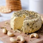 Keywords: vegan cashew cheese, garlic herb cashew cheese, sliceable vegan cheese, gluten free cheese alternative, plant based cheese, agar agar cheese