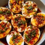 These Spicy Chili Garlic Deviled Eggs are a vibrant twist on a classic appetizer, packing a fiery kick with every bite. Creamy, tangy, and easy to make, they are perfect for parties or a flavorful snack.