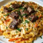 This Steak Linguine with Roasted Carrots & Parsley is a satisfying twist on classic pasta dishes. Tender pieces of steak pair perfectly with sweet roasted carrots and a flavorful garlic butter sauce. It’s an easy, delicious meal that’s perfect for weeknight dinners or special occasions.