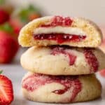 These Strawberry Cheesecake Cookies combine a creamy cold cream cheese center with a sweet strawberry jam swirl inside a soft, buttery cookie. The unique layering of dough and jam creates beautiful ribbons, while the frozen cheesecake centers add a luscious surprise in every bite. Perfectly baked to a golden finish and rolled in sugar for a delightful crunch, these cookies are a decadent treat for cheesecake and fruit lovers alike.