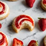Keywords: strawberry cheesecake cookies, cream cheese cookies, jam swirl cookies, soft cookies, easy dessert