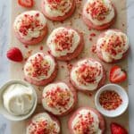 Strawberry Crunch Shortcake Cookies combine soft, fruity cookies with a creamy frosting and a delightful crunchy topping. This treat is perfect for summer gatherings or any time you crave a sweet, strawberry-flavored snack.