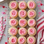 Delightfully soft and buttery sugar cookie cups filled with creamy, smooth cream cheese frosting. These easy-to-make treats are perfect for parties or a sweet snack, featuring a tender sugar cookie base baked in muffin tins and topped with a luscious homemade frosting that can be colored for a festive touch.