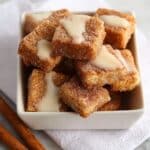 - Add an Optional Sweet Drizzle: To make the glaze, combine 1 cup powdered sugar with 1 tablespoon milk or water. Stir until smooth then drizzle over the cinnamon sugar-coated cake bites. Allow the glaze to set slightly before serving.