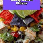 A vibrant and flavorful Tex-Mex Chopped Chicken Salad featuring diced chicken, fresh vegetables, black beans, and a zesty taco-seasoned ranch dressing, topped with crunchy tortilla chips for the perfect texture contrast. Ready in just 25 minutes, this salad is a satisfying and colorful meal ideal for lunch or dinner.