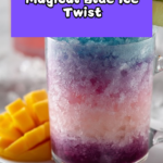 - Step 4: Crush the blue ice cubes and add a layer on top of the drink. Garnish with fresh mango cubes and lime wedges for a tropical finish.
