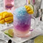The Maui Moscow Mule is a vibrant and refreshing twist on the classic Moscow Mule cocktail. Featuring the tropical flavors of KINKY Pink vodka liqueur and fresh mango, this zesty drink is brightened with a splash of lime juice and hard ginger beer. A magical touch of blue crushed ice made from butterfly pea flower extract adds an eye-catching visual layer, making it perfect for summer gatherings or anytime you want a colorful, delicious cocktail.
